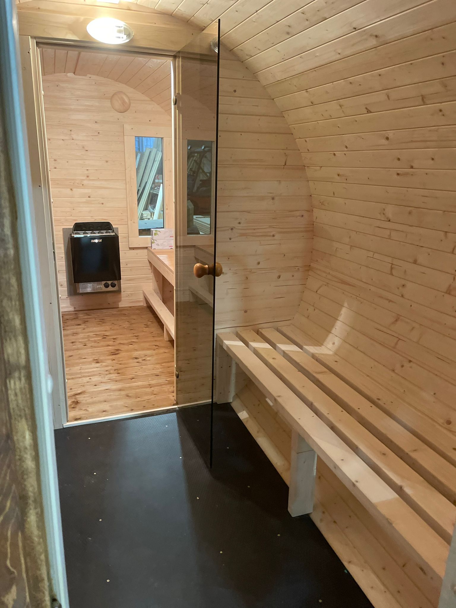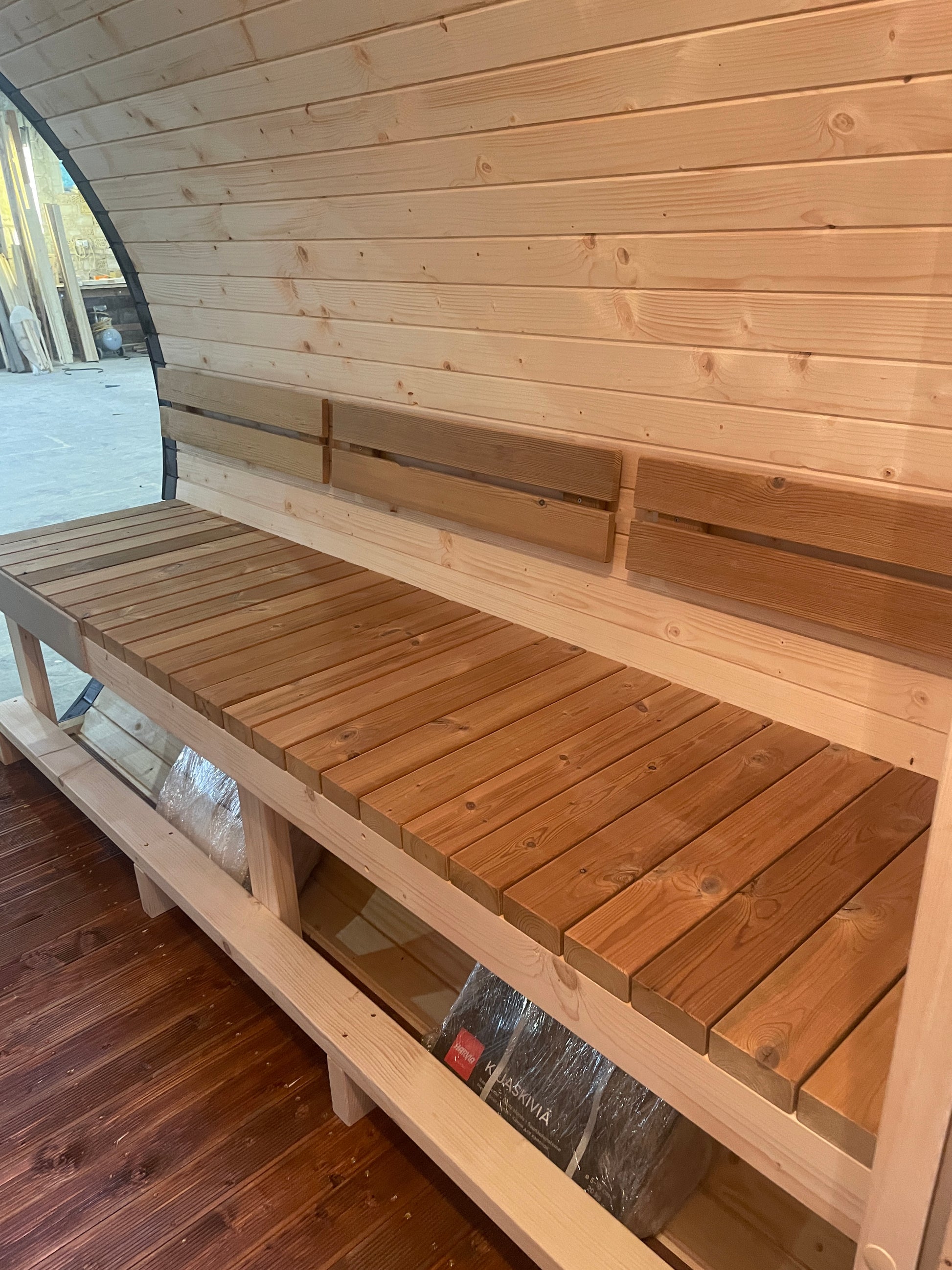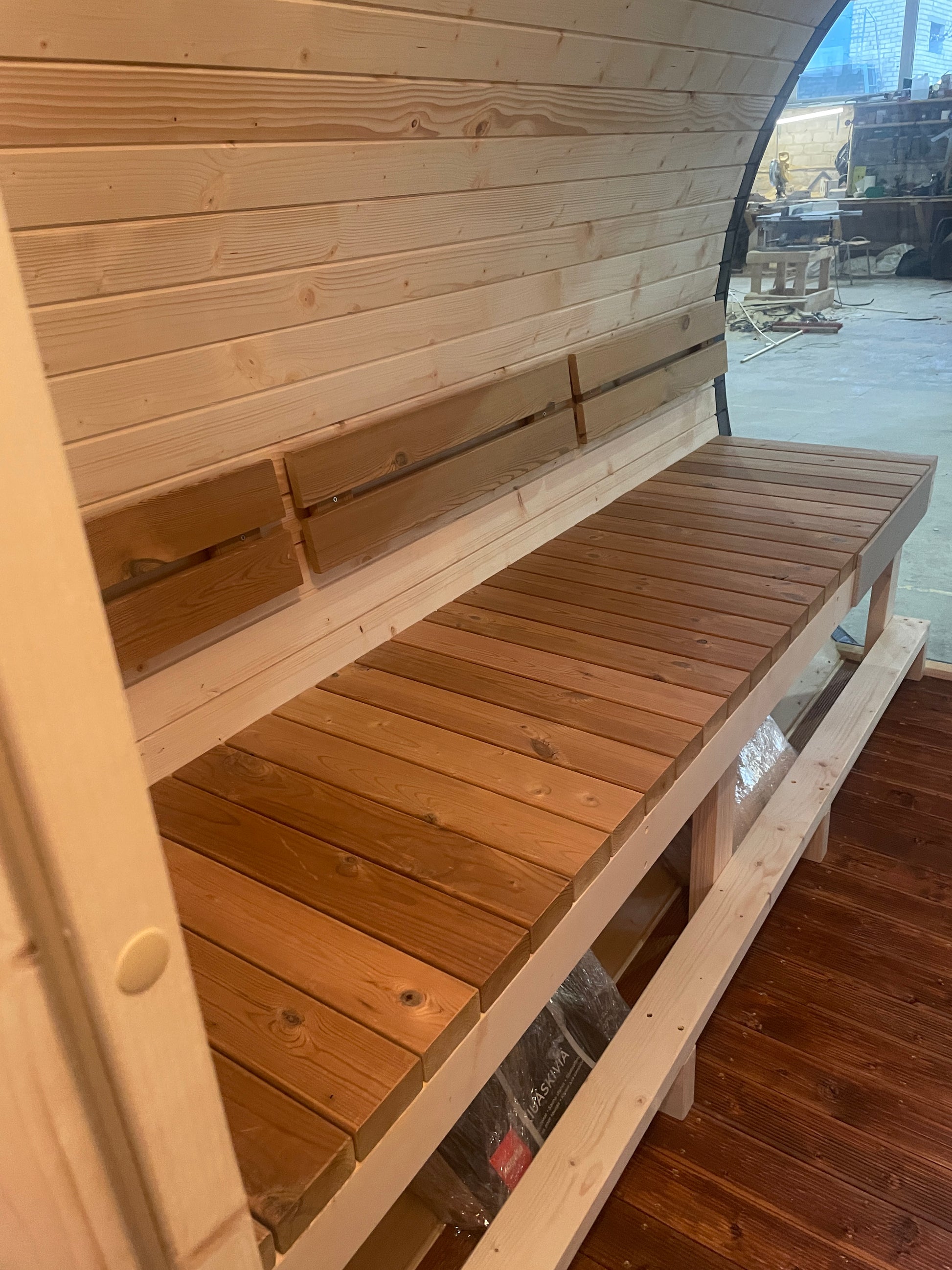 Benches: Sauna: 2 pcs thermowood; Relax: 2 pcs spruce wood