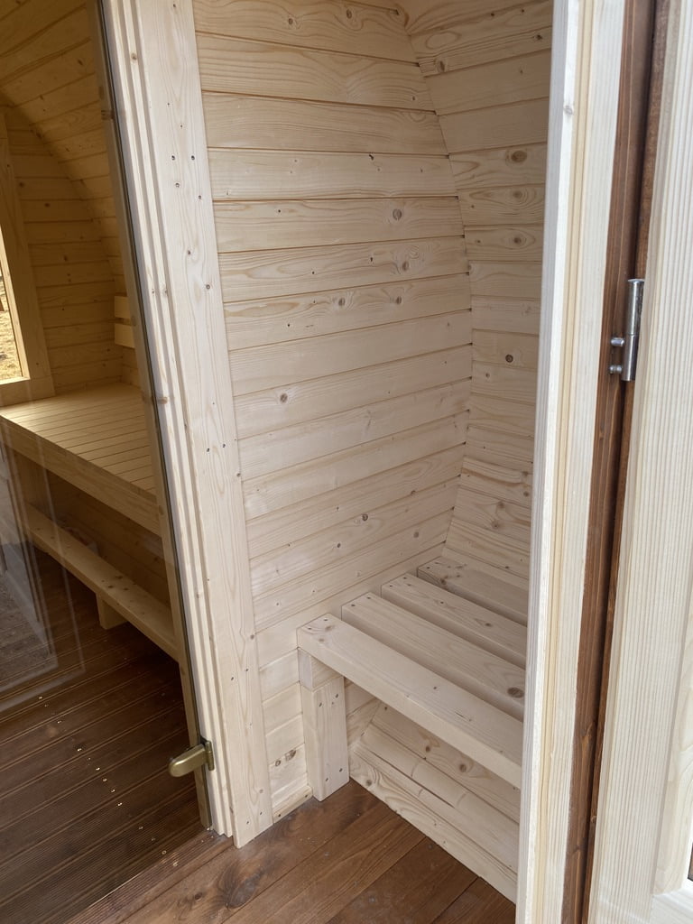 Step inside serenity. The Quiet Delight is your cozy retreat—a compact yet inviting barrel sauna designed to calm the mind and warm the body. With just the right blend of space, function, and comfort, it offers the perfect hideaway for intimate sauna moments or peaceful solo rituals.