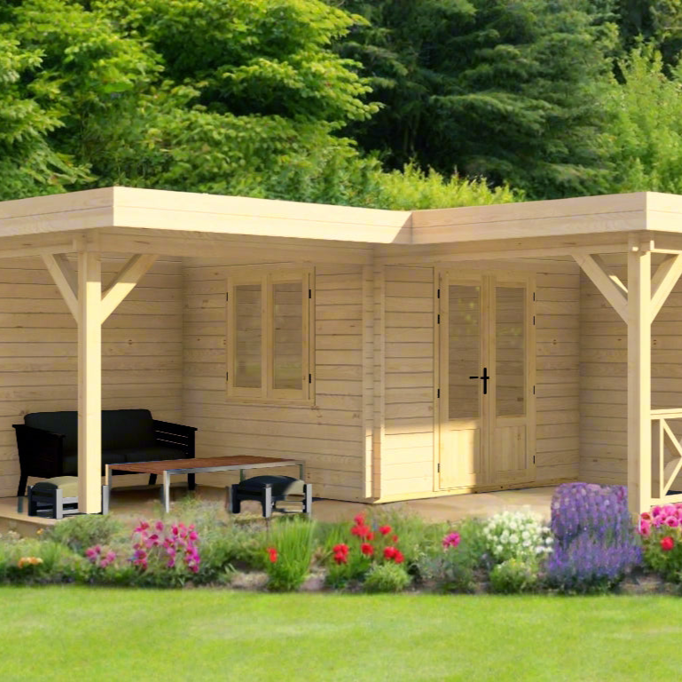 The Cypress Corner wooden garden house is a soulful sanctuary, crafted from robust 44 mm spruce logs that radiate durability and a cozy, natural warmth. Spanning a generous 595 x 595 cm, this haven offers a spacious, thoughtfully designed space where sunlight pours through large windows, and intricate wooden details weave an aesthetic charm that feels like a gentle hug from nature. Perfect as a garden retreat, a serene hideaway, or even a petite dwelling, Cypress Corner blends comfort and harmony with its surroundings, making it an exquisite choice for those who cherish authenticity and quality.