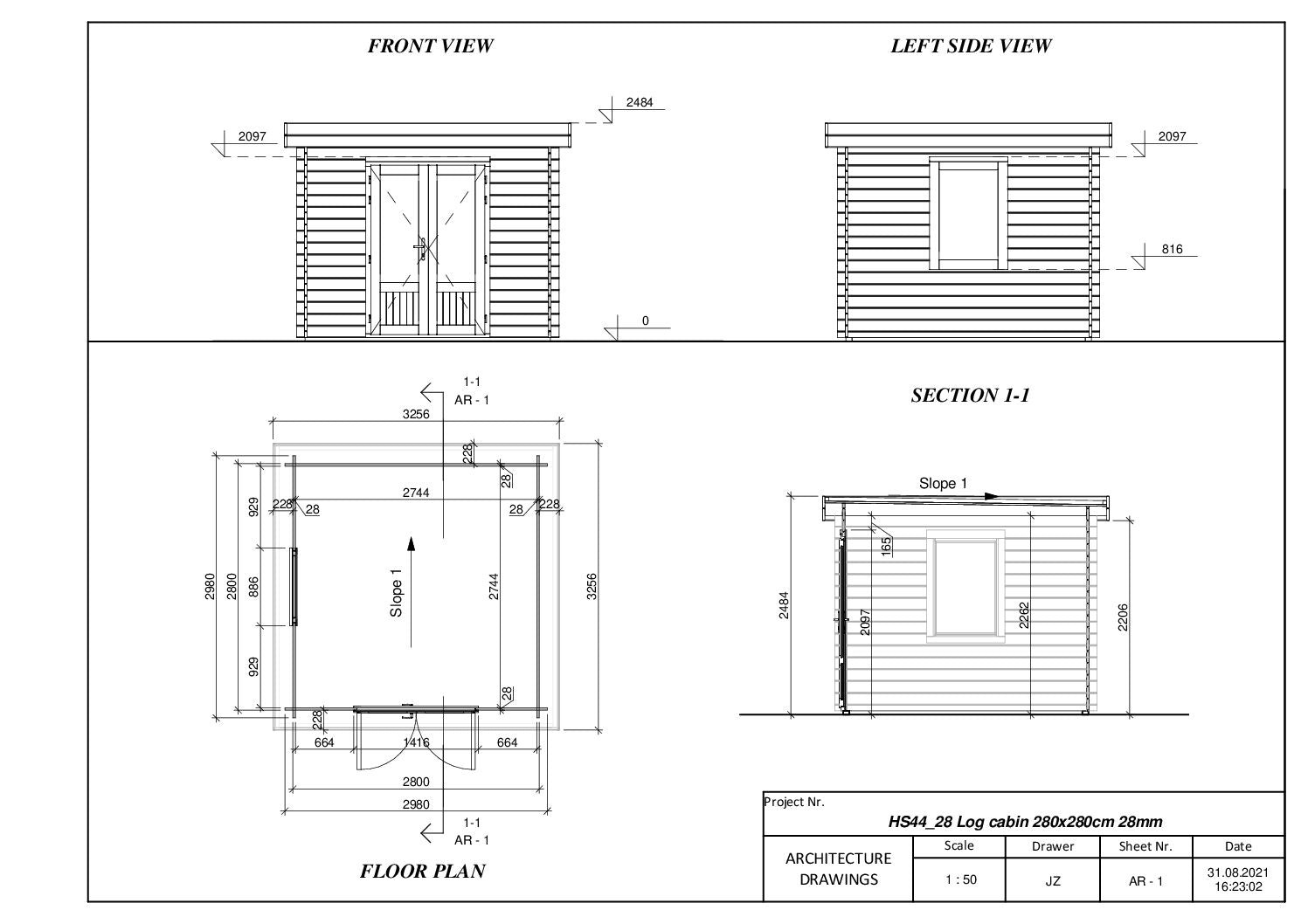 Windows: 1x Fixed spruce window SFW-1 (886 x 1281 mm)
