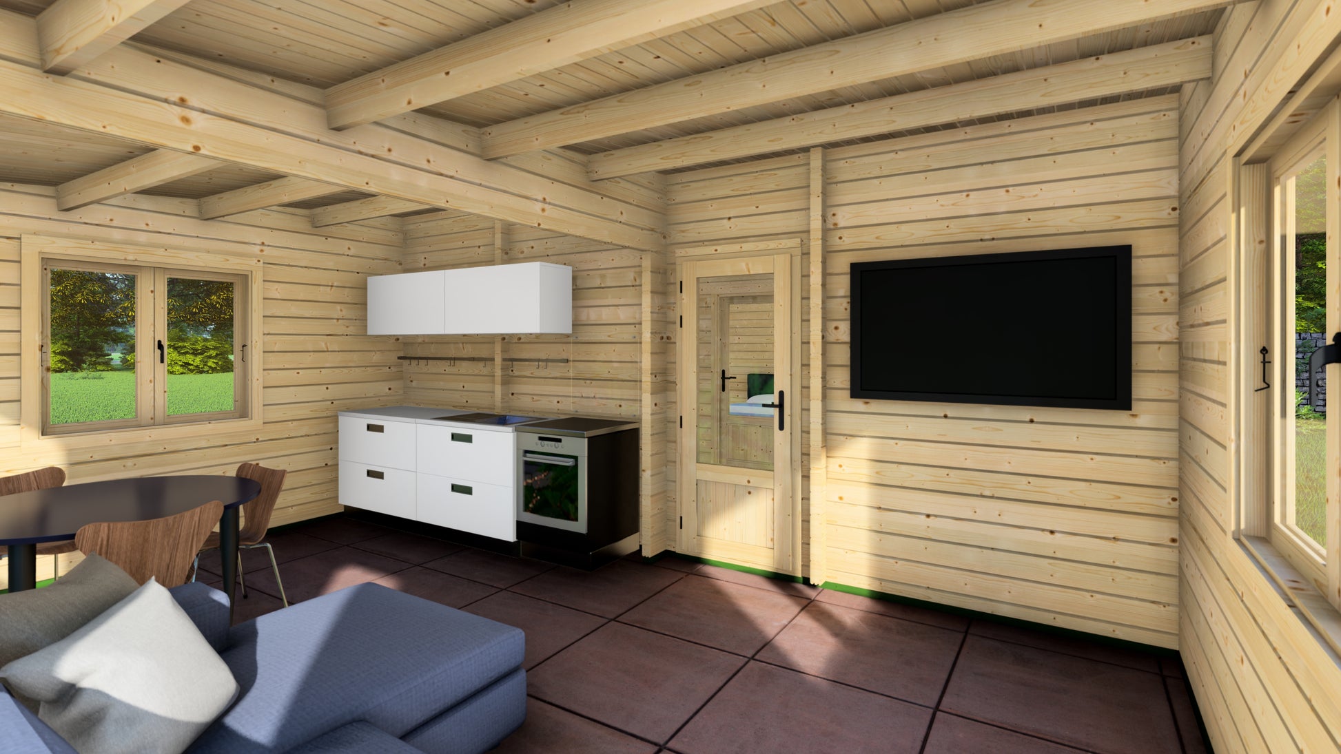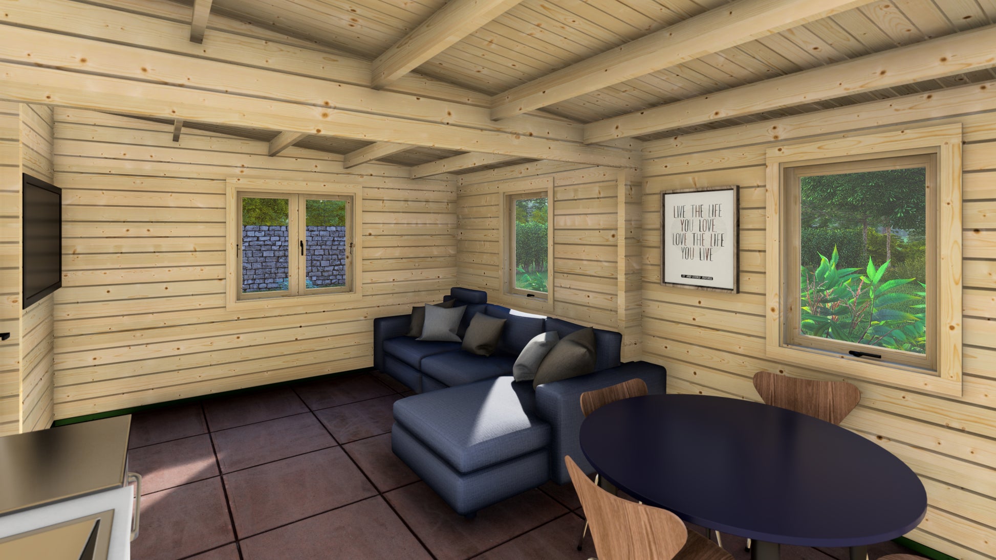 One of the standout features of the Cherry Chalet is its double-glazed windows, which offer energy efficiency and fill the space with natural daylight. The result is a bright, comfortable environment perfect for year-round use. It’s your chance to combine elegance and utility in a single, timeless design—bringing you closer to nature without sacrificing comfort.