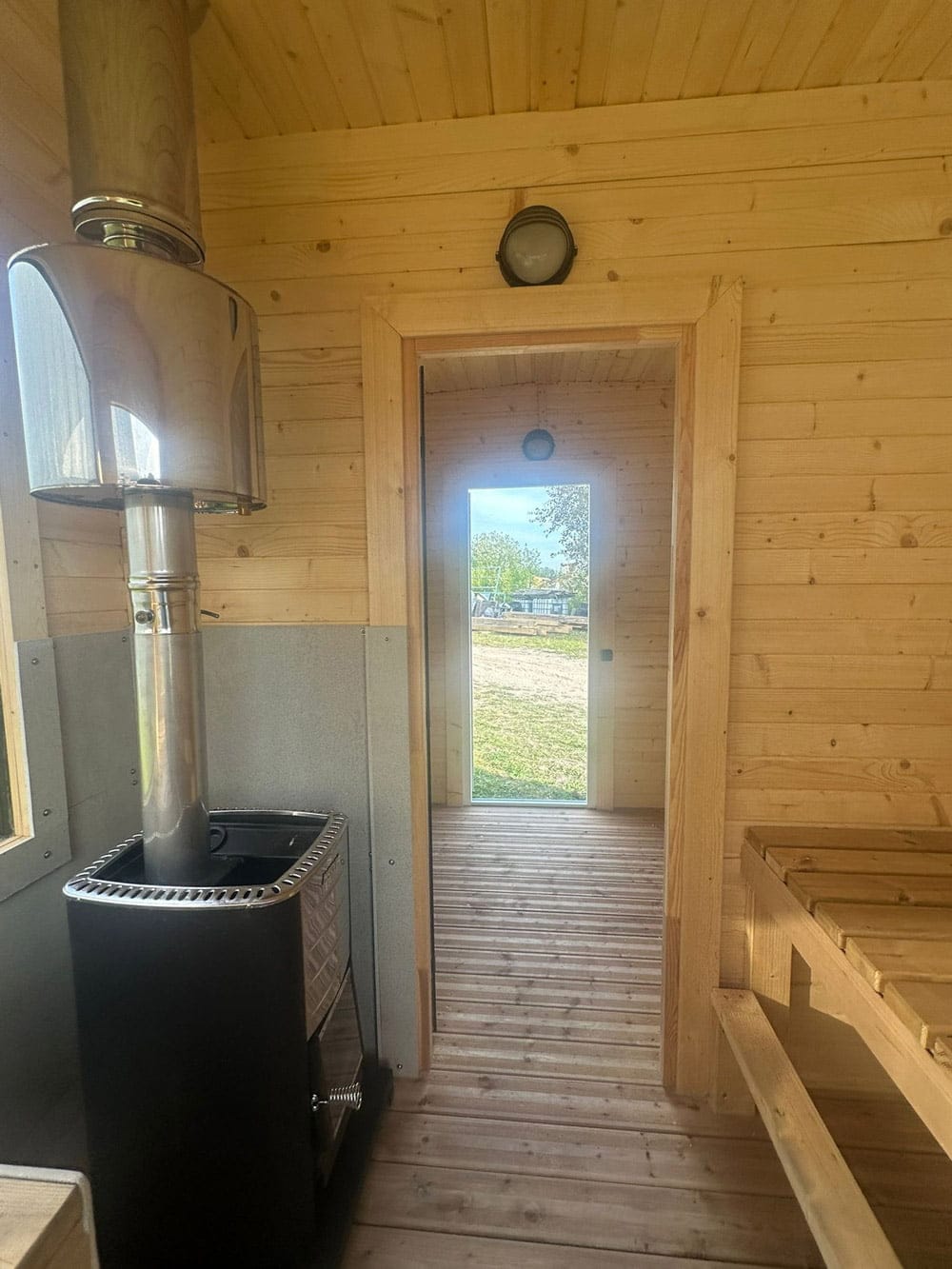 Integrated water boiler on the chimney – enjoy warm water while heating the sauna