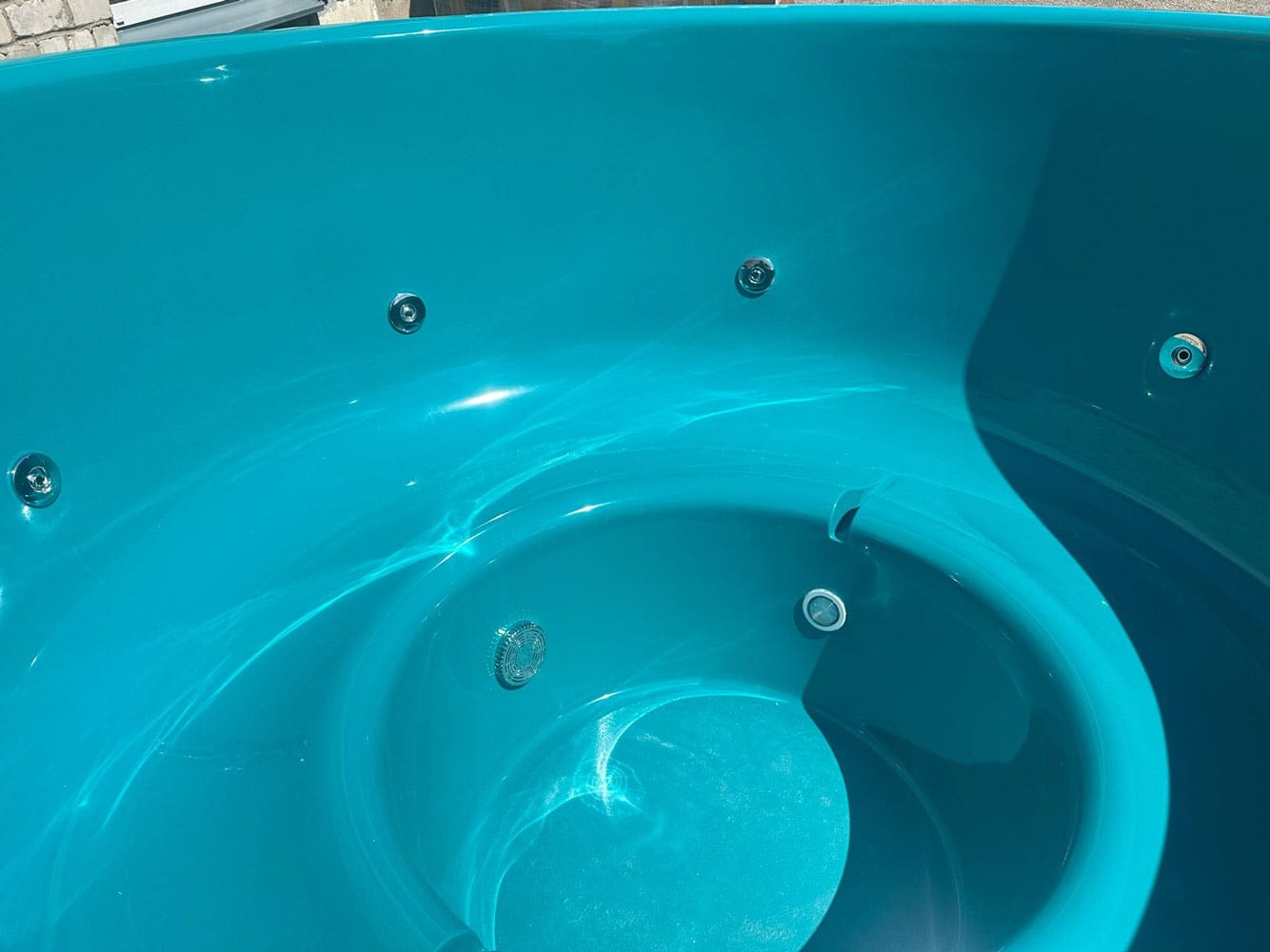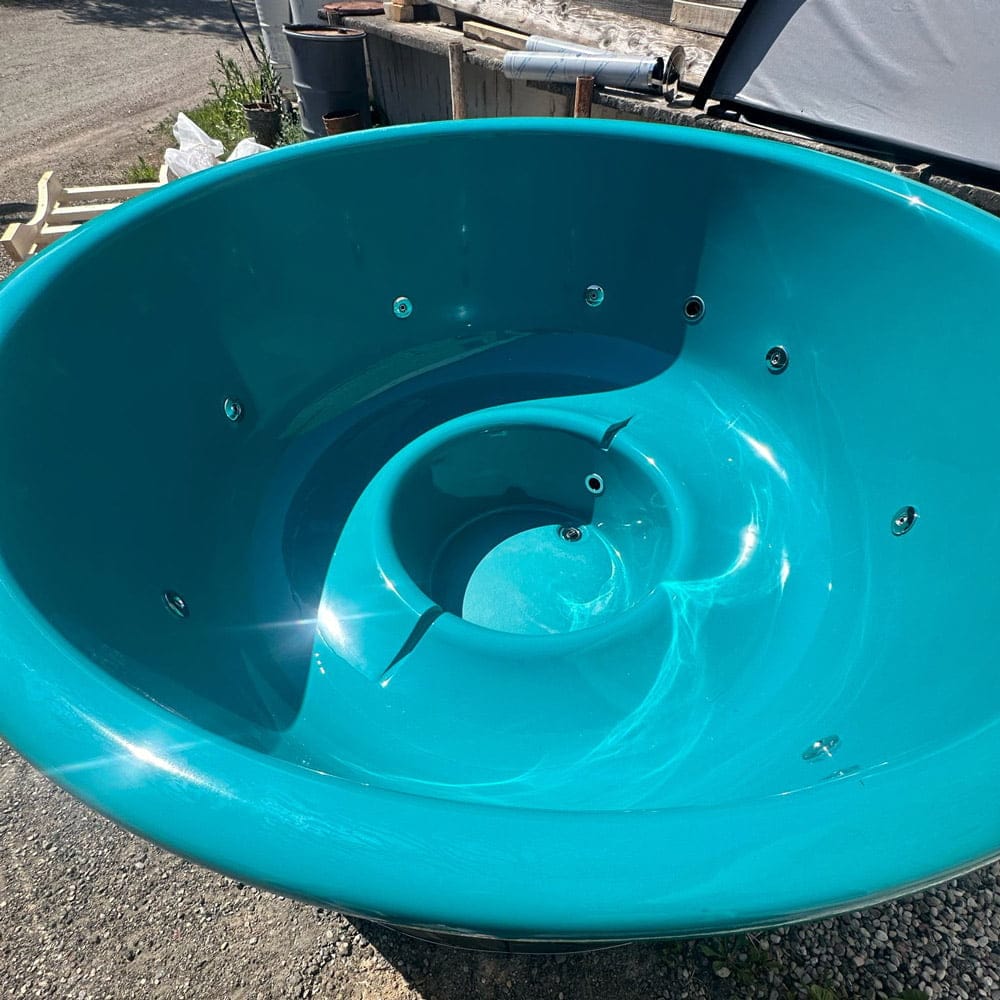 - Fiberglass Bath: Vibrant turquoise finish (customizable with colors like dark gray, white, black, burgundy red, blue, and more)