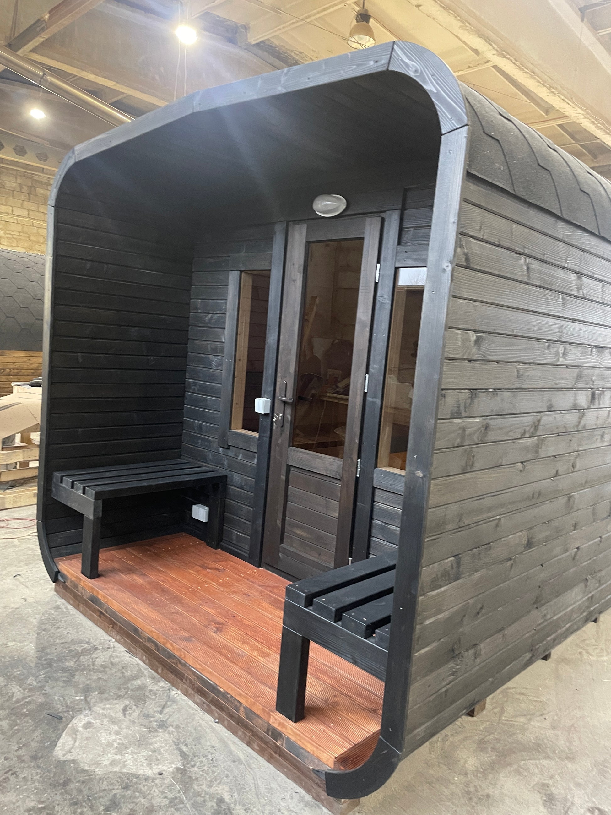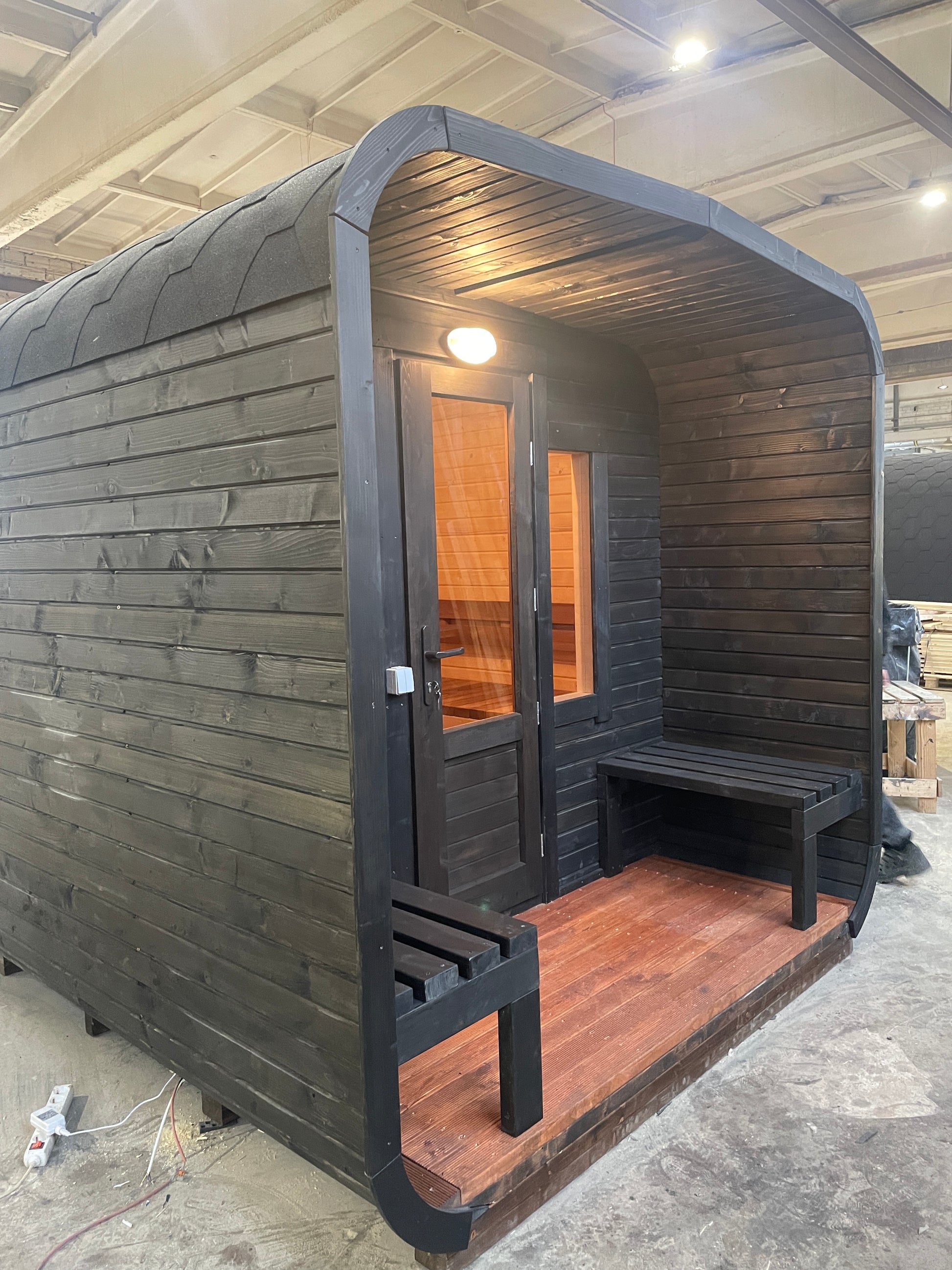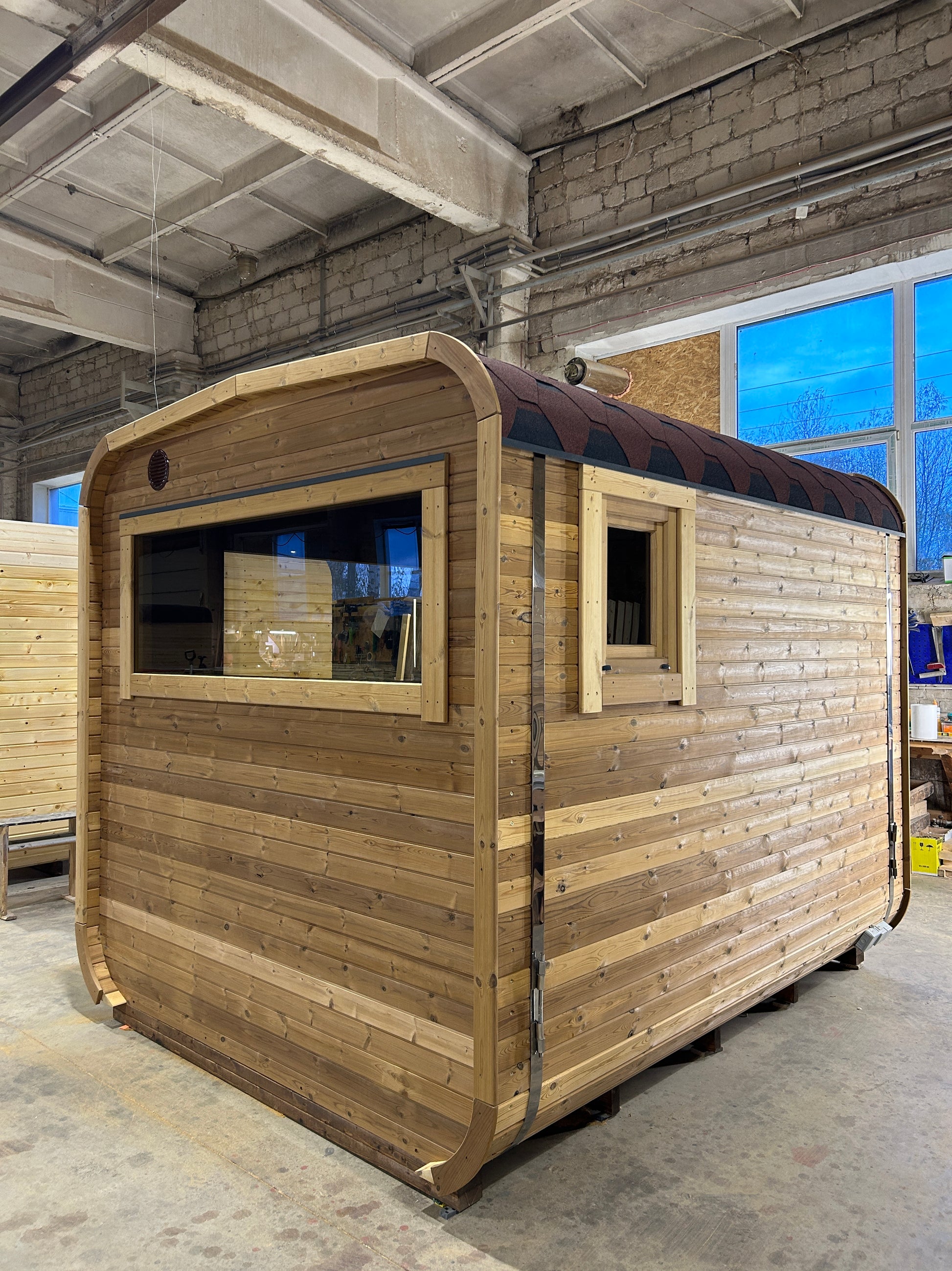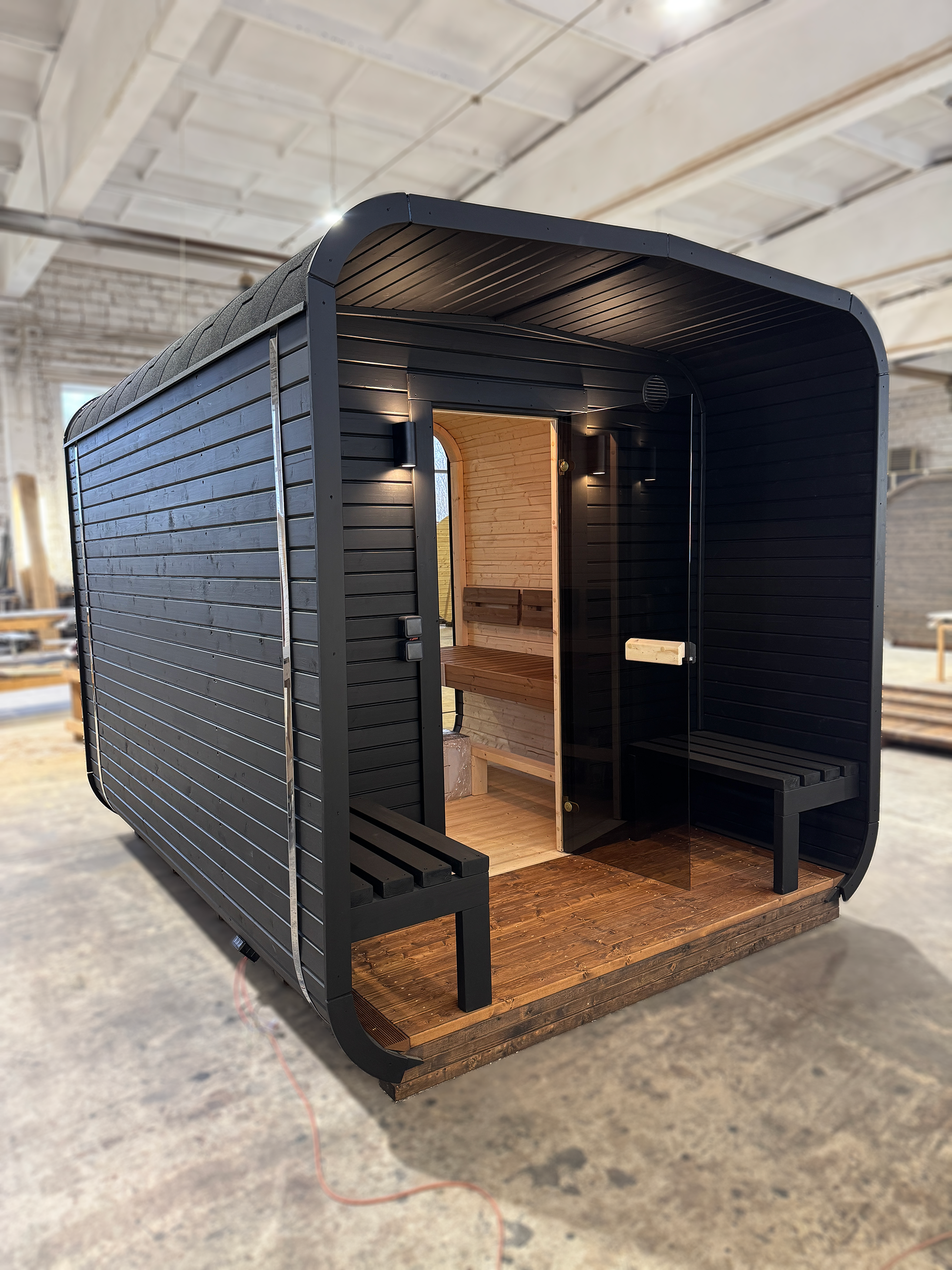 Please visit Sauna Accessories section of our store and select windows, electric or wood burning heater and other accessories of your preference. All accessories of your choice will be built into your ready-to-use sauna.