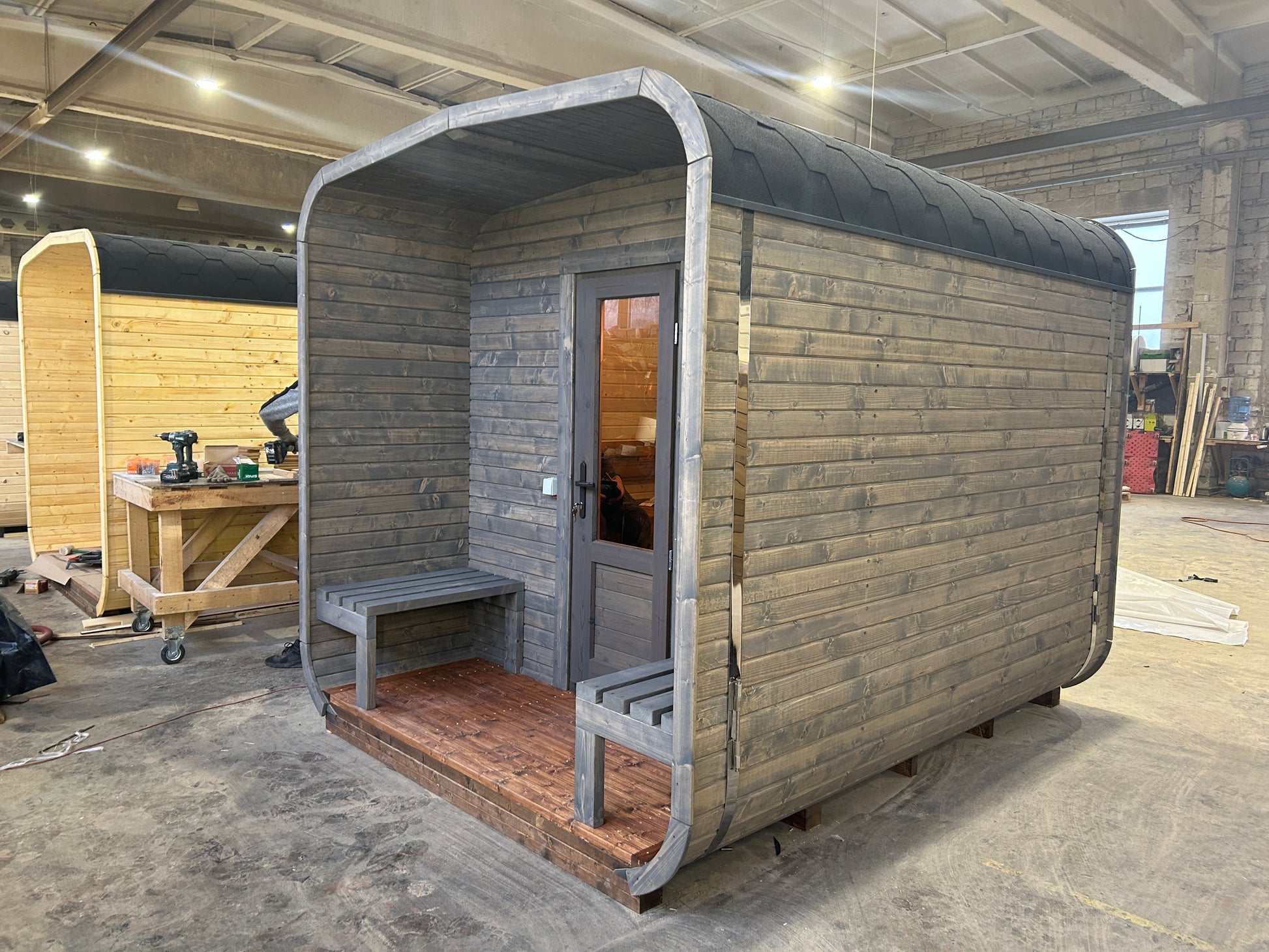 Benches: Sauna: 2 pcs thermowood; Terrace: 2 pcs spruce wood