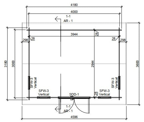 - Windows: 4x Spruce Fixed Windows SFW-3 V (571 x 1921 mm)