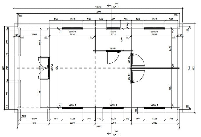 1 × Standard spruce window SW-1 (886 × 1281 mm) |