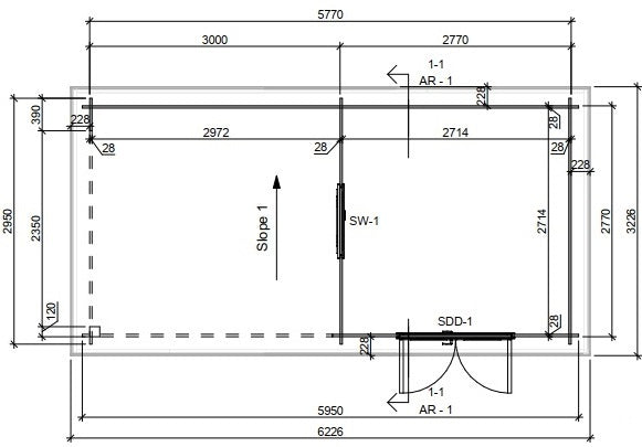 ·         Doors: 1x Double spruce door SDD-1 (1416 x 2053 mm)