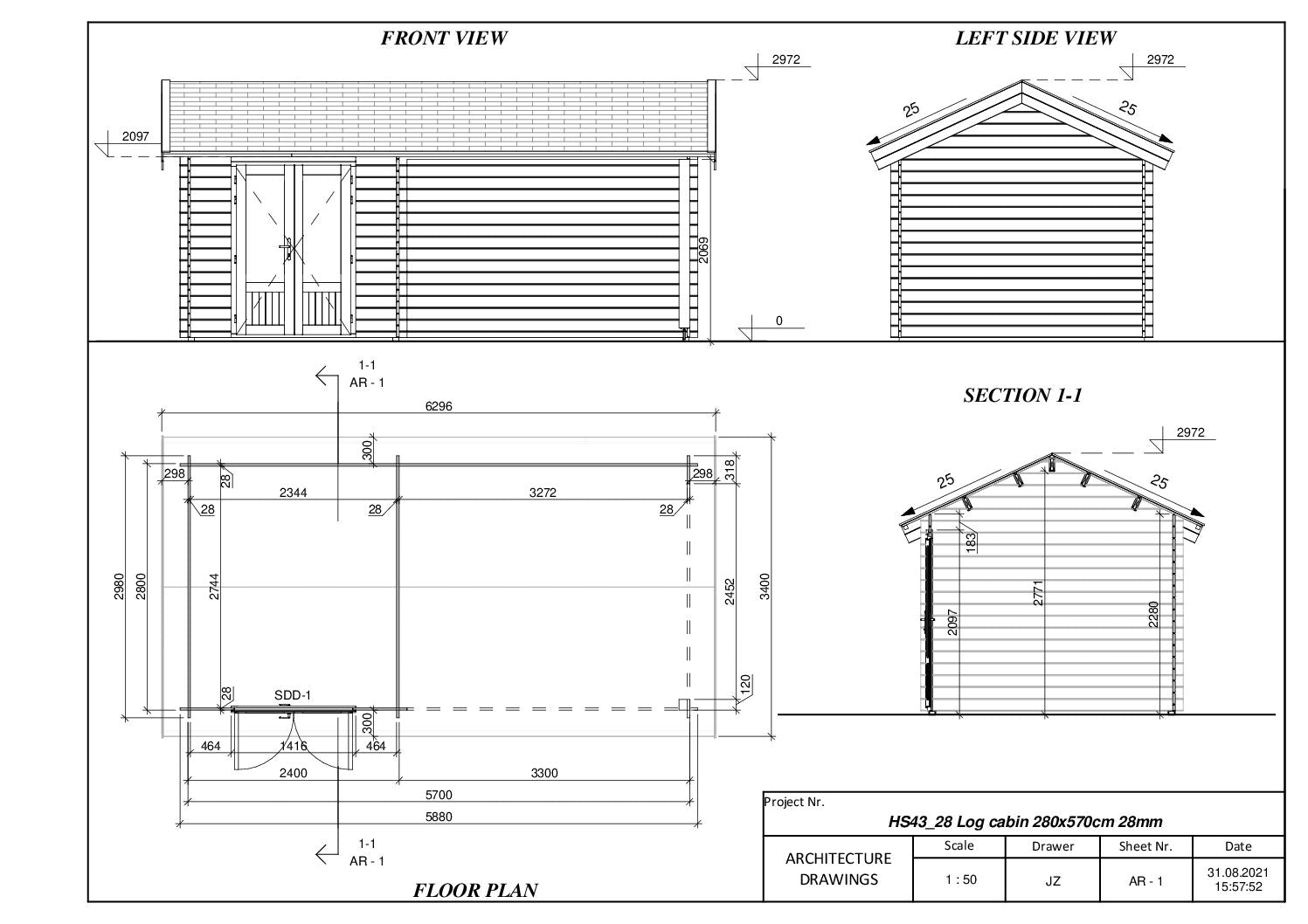 · Doors: 1x Double spruce door SDD-1 (1416 x 2053 mm)