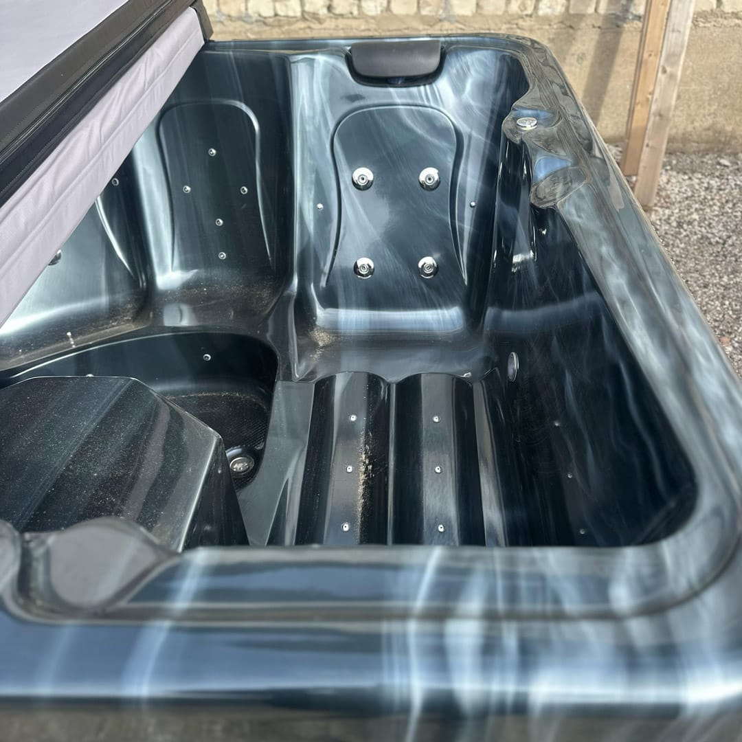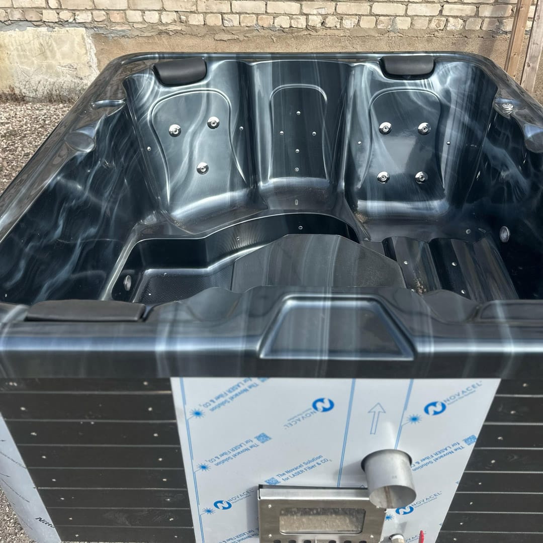Step into serenity with the Vibrant Vapors Hot Tub, a stunning blend of design and functionality. This square-shaped beauty offers ample space for unwinding—measuring 2 meters wide, 2 meters deep, and 0.95 meters high. With a 1,000-liter capacity, it comfortably accommodates up to 5 people, featuring 4 seats and 1 luxurious lying area for complete relaxation.