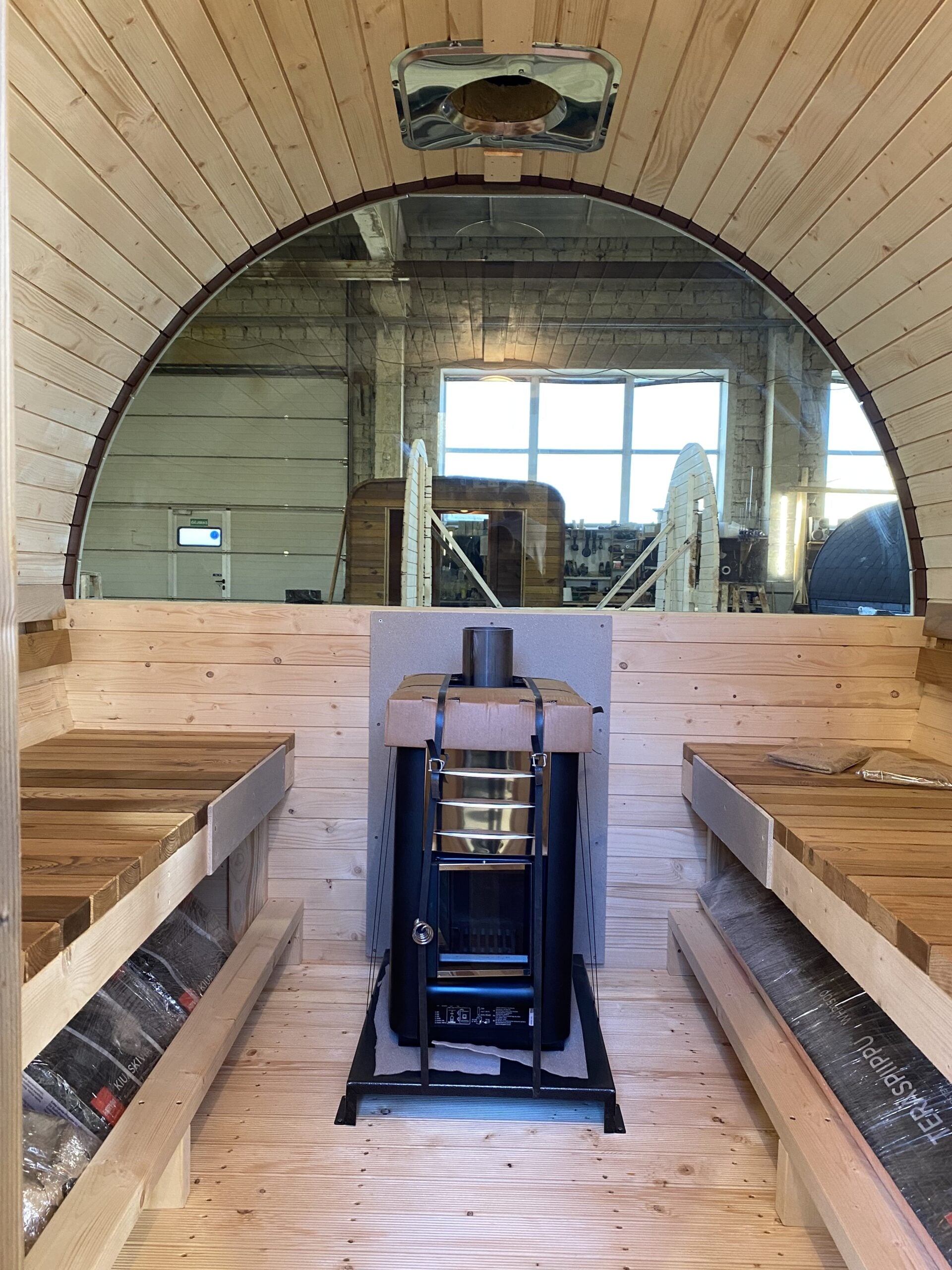 Please visit Sauna Accessories section of our store and select windows, electric or wood burning heater and other accessories of your preference. All accessories of your choice will be built into your ready-to-use sauna.